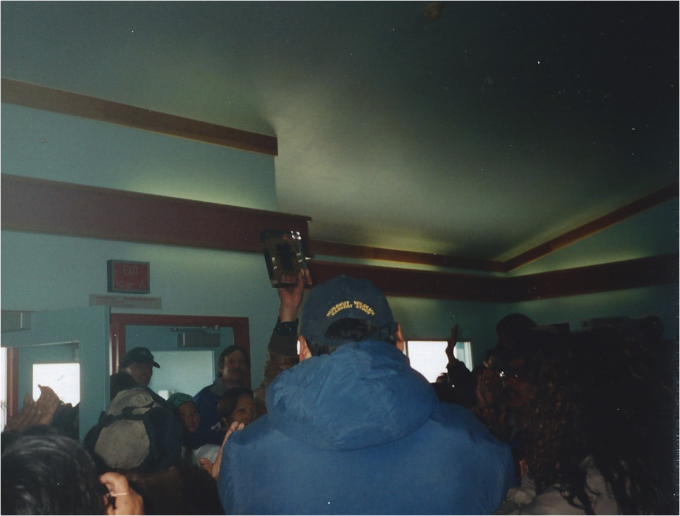 Kunuk bringing home the Camera d’Or at the Igloolik airport, 2001.